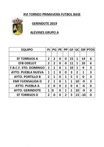« CLASIFICACIÓN JORNADAS 1 Y 2. XVIII TORNEO DE PRIMAVERA FÚTBOL BASE 2019