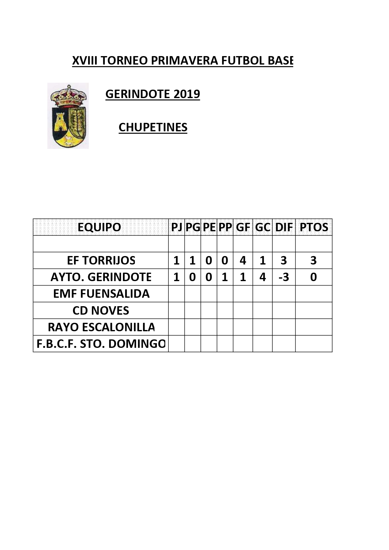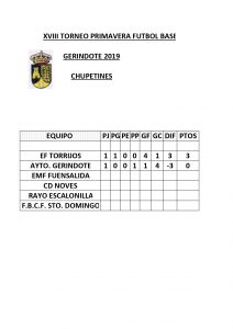 « CLASIFICACIÓN JORNADAS 1 Y 2. XVIII TORNEO DE PRIMAVERA FÚTBOL BASE 2019